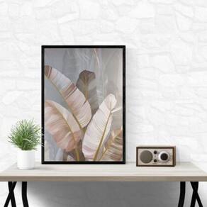 Quadro Folhagens Linho Cinza E Rosê 45X34Cm