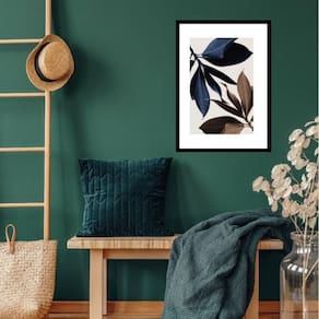 Quadro Folhas Azul E Marrom - 60X48Cm