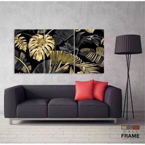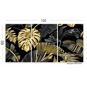 Quadro Folhas Douradas Tropical Conjunto 120x60 3 peças m02