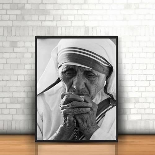 Quadro foto madre teresa de calcutá 45x34cm - com vidro Moldura: madeira preta Informações do produto tire todas as suas dúvidas no descritivo abaixo: decoração para quarto, sala, cozinha, escritório, área gourmet e muito mais. Chega de paredes vazias medidas - cada peça tem 45x34cm a3 . Material do papel - papel fotográfico brilhante de altíssima resolução acabamento - todos os quadros são acompanhados de vidro para proteção da imagem. - moldura em madeira maciça na cor preta e pendurador . - os quadros são embalados de forma segura com plástico bolha com camada dupla de acordo com o tamanho dos quadros. - de 3 meses. Meu quadro chegou. Como posso fixá-lo Você precisa apenas de um martelo e um prego, pois os quadros já vão acompanhados de penduradores. Esta é a forma mais indicada. Como posso limpar meu quadro A limpeza é feita como um móvel comum da sua casa. Apenas um pano seco ou espanador são suficientes para tal