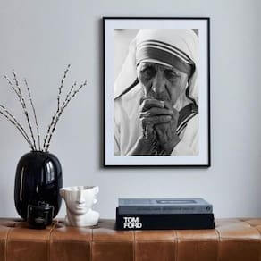 Quadro foto madre teresa de calcutá - 60x48cm Moldura: madeira preta Informações do produto tire todas as suas dúvidas no descritivo abaixo: decoração para quarto, sala, cozinha, escritório, área gourmet e muito mais. Chega de paredes vazias medidas - cada peça tem 60x48cm . Material do papel - papel fotográfico brilhante de altíssima resolução acabamento - todos os quadros são acompanhados de vidro para proteção da imagem. - moldura em madeira maciça na cor preta ou branca conforme produto escolhido e pendurador. - paspatur branco com 7cm de largura - os quadros são embalados de forma segura com plástico bolha com camada dupla de acordo com o tamanho dos quadros. Garantia - garantia de 3 meses. Meu quadro chegou. Como posso fixá-lo Você precisa apenas de um martelo e um prego, pois os quadros já vão acompanhados de penduradores. Esta é a forma mais indicada. Como posso limpar meu quadro A limpeza é feita como um móvel comum da sua casa. Apenas um pano seco ou espanador são suficientes para tal