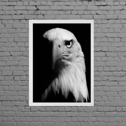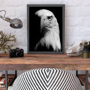 Quadro fotografia águia 33x24cm - com vidro Moldura: madeira branca Informações do produto tire todas as suas dúvidas no descritivo abaixo: decoração para quarto, sala, cozinha, escritório, área gourmet e muito mais. Chega de paredes vazias medidas - cada peça tem 33x24cm a4 . Material do papel - papel fotográfico brilhante de altíssima resolução acabamento - todos os quadros são acompanhados de vidro para proteção da imagem. - moldura em madeira maciça na cor preta e pendurador . - os quadros são embalados de forma segura com plástico bolha com camada dupla de acordo com o tamanho dos quadros. Garantia - garantia de 3 meses. Meu quadro chegou. Como posso fixá-lo Você precisa apenas de um martelo e um prego, pois os quadros já vão acompanhados de penduradores. Esta é a forma mais indicada. Como posso limpar meu quadro A limpeza é feita como um móvel comum da sua casa. Apenas um pano seco ou espanador são suficientes para tal Ean: 7895142247597