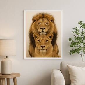 Quadro Fotografia Básica Neutra Leão e Leoa 33x24cm - Cor: Moldura preta