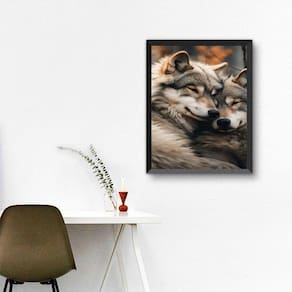 Quadro fotografia casal de lobos 45x34cm - com vidro