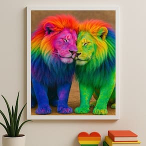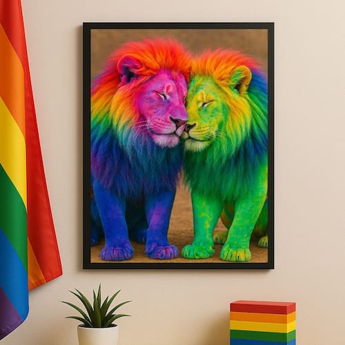 Quadro Fotografia LGBT Casal de Leões Gay 45x34cm - Cor: Moldura branca