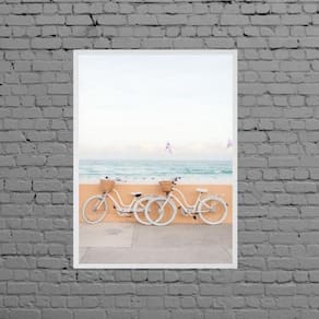 Quadro fotografia praia bicicletas 33x24cm - com vidro Moldura: madeira preta Informações do produto tire todas as suas dúvidas no descritivo abaixo: decoração para quarto, sala, cozinha, escritório, área gourmet e muito mais. Chega de paredes vazias medidas - cada peça tem 33x24cm a4 . Material do papel - papel fotográfico brilhante de altíssima resolução acabamento - todos os quadros são acompanhados de vidro para proteção da imagem. - moldura em madeira maciça na cor preta e pendurador . - os quadros são embalados de forma segura com plástico bolha com camada dupla de acordo com o tamanho dos quadros. Garantia - garantia de 3 meses. Meu quadro chegou. Como posso fixá-lo Você precisa apenas de um martelo e um prego, pois os quadros já vão acompanhados de penduradores. Esta é a forma mais indicada. Como posso limpar meu quadro A limpeza é feita como um móvel comum da sua casa. Apenas um pano seco ou espanador são suficientes para tal
