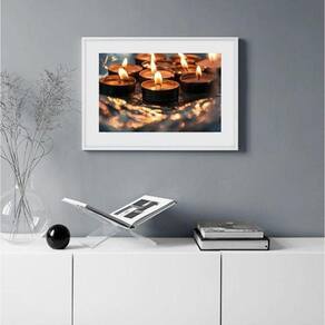 Quadro fotografia velas - 60x48cm Moldura: madeira preta Informações do produto tire todas as suas dúvidas no descritivo abaixo: decoração para quarto, sala, cozinha, escritório, área gourmet e muito mais. Chega de paredes vazias medidas - cada peça tem 60x48cm . Material do papel - papel fotográfico brilhante de altíssima resolução acabamento - todos os quadros são acompanhados de vidro para proteção da imagem. - moldura em madeira maciça na cor preta ou branca conforme produto escolhido e pendurador. - paspatur branco com 7cm de largura - os quadros são embalados de forma segura com plástico bolha com camada dupla de acordo com o tamanho dos quadros. Garantia - garantia de 3 meses. Meu quadro chegou. Como posso fixá-lo Você precisa apenas de um martelo e um prego, pois os quadros já vão acompanhados de penduradores. Esta é a forma mais indicada. Como posso limpar meu quadro A limpeza é feita como um móvel comum da sua casa. Apenas um pano seco ou espanador são suficientes para tal