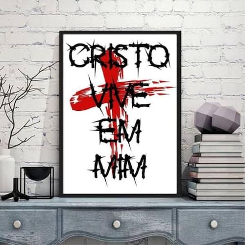 Quadro frase cristo vive em mim 45x34cm - com vidro Moldura: madeira preta Informações do produto tire todas as suas dúvidas no descritivo abaixo: decoração para quarto, sala, cozinha, escritório, área gourmet e muito mais. Chega de paredes vazias medidas - cada peça tem 45x34cm a3 . Material do papel - papel fotográfico brilhante de altíssima resolução acabamento - todos os quadros são acompanhados de vidro para proteção da imagem. - moldura em madeira maciça na cor preta e pendurador . - os quadros são embalados de forma segura com plástico bolha com camada dupla de acordo com o tamanho dos quadros. - de 3 meses. Meu quadro chegou. Como posso fixá-lo Você precisa apenas de um martelo e um prego, pois os quadros já vão acompanhados de penduradores. Esta é a forma mais indicada. Como posso limpar meu quadro A limpeza é feita como um móvel comum da sua casa. Apenas um pano seco ou espanador são suficientes para tal Ean: 7895142183567