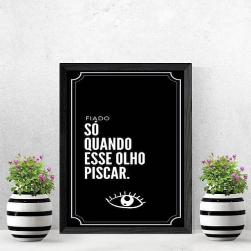 Quadro frase fiado não 24x18cm Moldura: madeira preta Informações do produto tire todas as suas dúvidas no descritivo abaixo: decoração para quarto, sala, cozinha, escritório, área gourmet e muito mais. Chega de paredes vazias medidas - cada peça tem 24x18cm a5 . Material do papel - papel fotográfico brilhante de altíssima resolução acabamento - todos os quadros são acompanhados de uma película de acetato para proteção da imagem. - moldura em madeira maciça na cor preta e pendurador móvel que pode ser retirado facilmente caso deseje fixar com fita dupla face. - os quadros são embalados de forma segura com plástico bolha com camada dupla de acordo com o tamanho dos quadros. - de 3 meses. Meu quadro chegou. Como posso fixá-lo Você precisa apenas de um martelo e um prego, pois os quadros já vão acompanhados de penduradores. Esta é a forma mais indicada. Caso prefira, você pode utilizar uma fita dupla face neste caso, sugerimos de alta qualidade para evitar que descole e seu quadro caia . Como posso limpar meu quadro A limpeza é feita como um móvel comum da sua casa. Apenas um pano seco ou espanador são suficientes para tal Marca: Não Informado