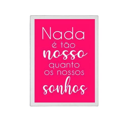 Não perca tempo e deixe suas paredes mais bonitas e cheias de personalidade com o Quadro Frase Nossos Sonhos Pink 45X34Cm Moldura Branca. Uma excelente opção de decoração para você ou para presentear alguém especial!