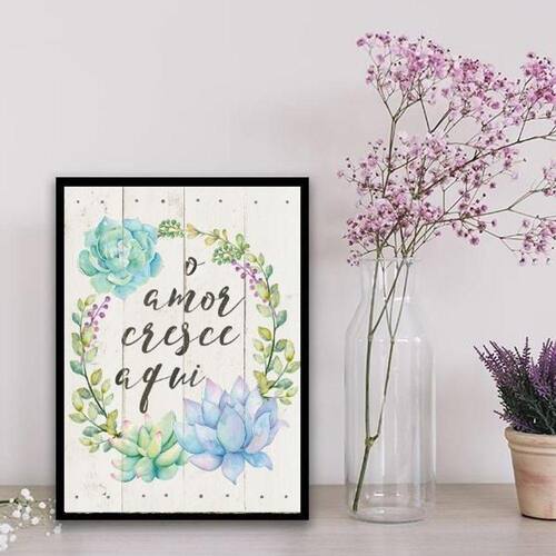 Quadro frase o amor cresce aqui 24x18cm - com vidro Moldura: madeira branca