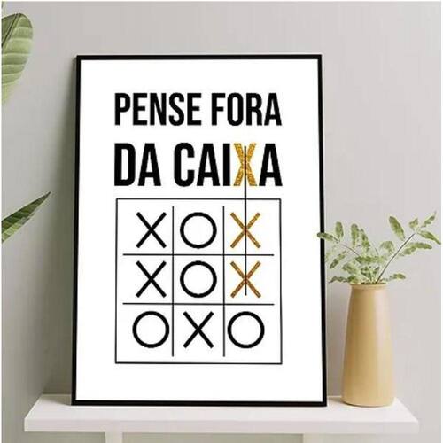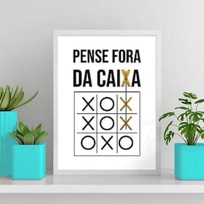 Quadro frase pense fora da caixa 45x34cm - com vidro Moldura: madeira branca Informações do produto tire todas as suas dúvidas no descritivo abaixo: decoração para quarto, sala, cozinha, escritório, área gourmet e muito mais. Chega de paredes vazias medidas - cada peça tem 45x34cm a3 . Material do papel - papel fotográfico brilhante de altíssima resolução acabamento - todos os quadros são acompanhados de vidro para proteção da imagem. - moldura em madeira maciça na cor preta e pendurador . - os quadros são embalados de forma segura com plástico bolha com camada dupla de acordo com o tamanho dos quadros. Garantia - garantia de 3 meses. Meu quadro chegou. Como posso fixá-lo Você precisa apenas de um martelo e um prego, pois os quadros já vão acompanhados de penduradores. Esta é a forma mais indicada. Como posso limpar meu quadro A limpeza é feita como um móvel comum da sua casa. Apenas um pano seco ou espanador são suficientes para tal
