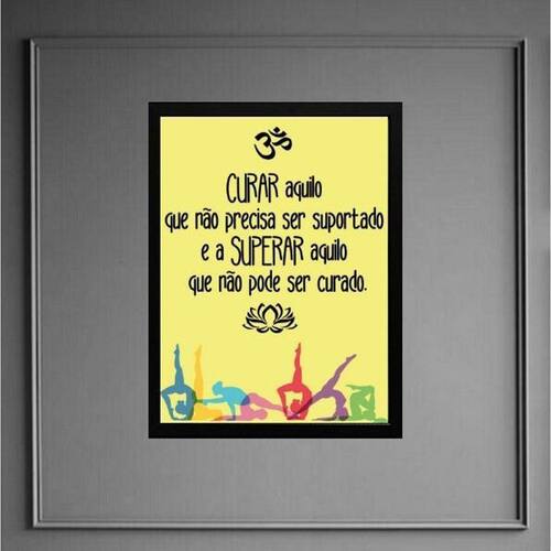 Quadro frase yoga - curar e superar 24x18cm Moldura: madeira branca Informações do produto tire todas as suas dúvidas no descritivo abaixo: decoração para quarto, sala, cozinha, escritório, área gourmet e muito mais. Chega de paredes vazias medidas - cada peça tem 24x18cm a5 . Material do papel - papel fotográfico brilhante de altíssima resolução acabamento - todos os quadros são acompanhados de uma película de acetato para proteção da imagem. - moldura em madeira maciça na cor preta ou branca conforme produto escolhido e pendurador móvel que pode ser retirado facilmente caso deseje fixar com fita dupla face. - os quadros são embalados de forma segura com plástico bolha com camada dupla de acordo com o tamanho dos quadros. Garantia - garantia de 3 meses. Meu quadro chegou. Como posso fixá-lo Você precisa apenas de um martelo e um prego, pois os quadros já vão acompanhados de penduradores. Esta é a forma mais indicada. Caso prefira, você pode utilizar uma fita dupla face neste caso, sugerimos de alta qualidade para evitar que descole e seu quadro caia . Como posso limpar meu quadro A limpeza é feita como um móvel comum da sua casa. Apenas um pano seco ou espanador são suficientes para tal
