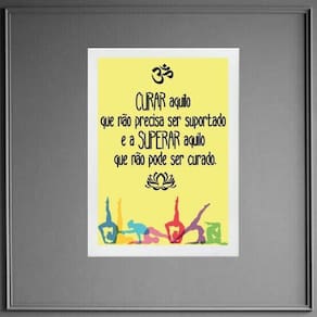 Quadro frase yoga - curar e superar 33x24cm - com vidro Moldura: madeira preta Informações do produto tire todas as suas dúvidas no descritivo abaixo: decoração para quarto, sala, cozinha, escritório, área gourmet e muito mais. Chega de paredes vazias medidas - cada peça tem 33x24cm a4 . Material do papel - papel fotográfico brilhante de altíssima resolução acabamento - todos os quadros são acompanhados de vidro para proteção da imagem. - moldura em madeira maciça na cor preta ou branca conforme produto escolhido e pendurador . - os quadros são embalados de forma segura com plástico bolha com camada dupla de acordo com o tamanho dos quadros. Garantia - garantia de 3 meses. Meu quadro chegou. Como posso fixá-lo Você precisa apenas de um martelo e um prego, pois os quadros já vão acompanhados de penduradores. Esta é a forma mais indicada. Como posso limpar meu quadro A limpeza é feita como um móvel comum da sua casa. Apenas um pano seco ou espanador são suficientes para tal