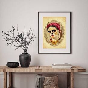 Quadro frida dia de los muertos - 60x48cm Moldura: madeira branca Informações do produto tire todas as suas dúvidas no descritivo abaixo: decoração para quarto, sala, cozinha, escritório, área gourmet e muito mais. Chega de paredes vazias medidas - cada peça tem 60x48cm . Material do papel - papel fotográfico brilhante de altíssima resolução acabamento - todos os quadros são acompanhados de vidro para proteção da imagem. - moldura em madeira maciça na cor preta ou branca conforme produto escolhido e pendurador. - paspatur branco com 7cm de largura - os quadros são embalados de forma segura com plástico bolha com camada dupla de acordo com o tamanho dos quadros. Garantia - garantia de 3 meses. Meu quadro chegou. Como posso fixá-lo Você precisa apenas de um martelo e um prego, pois os quadros já vão acompanhados de penduradores. Esta é a forma mais indicada. Como posso limpar meu quadro A limpeza é feita como um móvel comum da sua casa. Apenas um pano seco ou espanador são suficientes para tal