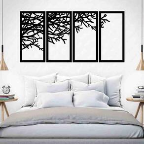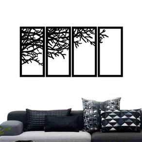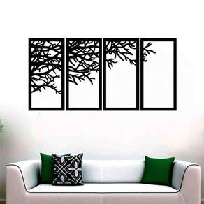 Com um design vazado de galhos secos, este quadro traz um toque de natureza e sofisticação para o ambiente. Seu tamanho total é de 123cm de comprimento por 60cm de altura, com espaçamento recomendado de 1cm entre as peças. As peças laterais possuem medidas de 30x60cm, assim como as peças intermediárias.