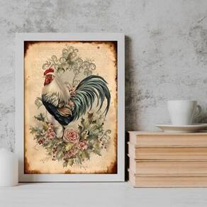 Quadro Galo Retrô 33x24cm Vidro Madeira Preta