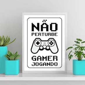 Quadro gamer jogando não perturbe 45x34cm Moldura: madeira preta Informações do produto tire todas as suas dúvidas no descritivo abaixo: decoração para quarto, sala, cozinha, escritório, área gourmet e muito mais. Chega de paredes vazias. Medidas - cada peça tem 45x34cm a3 . Material do papel - papel fotográfico brilhante de altíssima resolução acabamento - todos os quadros são acompanhados de uma película de acetato para proteção da imagem. - os quadros são embalados de forma segura com plástico bolha com camada dupla de acordo com o tamanho dos quadros. Você precisa apenas de um martelo e um prego, pois os quadros já vão acompanhados de penduradores. Esta é a forma mais indicada. Caso prefira, você pode utilizar uma fita dupla face neste caso, sugerimos de alta qualidade para evitar que descole e seu quadro caia . Como posso limpar meu quadro A limpeza é feita como um móvel comum da sua casa. Apenas um pano seco ou espanador são suficientes para tal Ean: 7895145480755