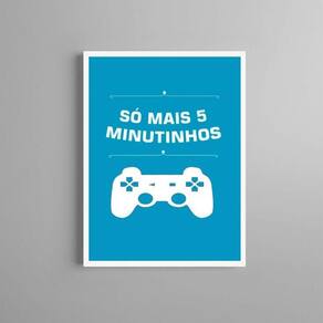 Quadro gamer - só mais 5 minutinhos 24x18cm - com vidro Cor: moldura branca Informações do produto tire todas as suas dúvidas no descritivo abaixo: decoração para quarto, sala, cozinha, escritório, área gourmet e muito mais. Chega de paredes vazias medidas - cada peça tem 24x18cm a5 . Material do papel - papel fotográfico brilhante de altíssima resolução acabamento - todos os quadros são acompanhados de vidro para proteção da imagem. - moldura em madeira maciça na cor preta ou branca conforme produto escolhido e pendurador . - os quadros são embalados de forma segura com plástico bolha com camada dupla de acordo com o tamanho dos quadros. Garantia - garantia de 3 meses. Meu quadro chegou. Como posso fixá-lo Você precisa apenas de um martelo e um prego, pois os quadros já vão acompanhados de penduradores. Esta é a forma mais indicada. Como posso limpar meu quadro A limpeza é feita como um móvel comum da sua casa. Apenas um pano seco ou espanador são suficientes para tal