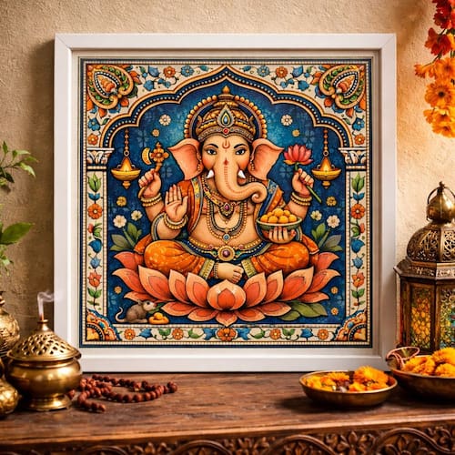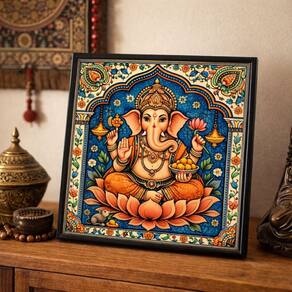 Quadro Ganesha Deusa Indiana 33x33cm Mold Preta