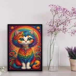 Procurando por um quadro decorativo que traga mais vida e personalidade para os ambientes da sua casa? Apresentamos o Quadro Decorativo Gatinha Colorida! Com medidas de 24x18cm A5 , este lindo quadro é perfeito para decorar diversos espaços, como quartos, salas, cozinhas, escritórios, áreas gourmet e muito mais.