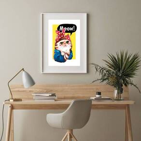 Quadro Gatinha We Can Do It - 60x48cm - Moldura: Madeira preta