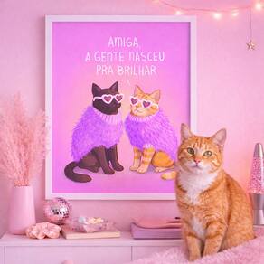 Quadro Gatinhas Nascidas Para Brilhar 33x24cm Mold Preta