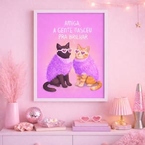 Quadro Gatinhas Nascidas Para Brilhar 45x34cm Mold Preta