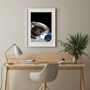 Quadro gatinho astronauta - 60x48cm Moldura: madeira branca Informações do produto tire todas as suas dúvidas no descritivo abaixo: decoração para quarto, sala, cozinha, escritório, área gourmet e muito mais. Chega de paredes vazias medidas - cada peça tem 60x48cm . Material do papel - papel fotográfico brilhante de altíssima resolução acabamento - todos os quadros são acompanhados de vidro para proteção da imagem. - moldura em madeira maciça na cor preta ou branca conforme produto escolhido e pendurador. - paspatur branco com 7cm de largura - os quadros são embalados de forma segura com plástico bolha com camada dupla de acordo com o tamanho dos quadros. Garantia - garantia de 3 meses. Meu quadro chegou. Como posso fixá-lo Você precisa apenas de um martelo e um prego, pois os quadros já vão acompanhados de penduradores. Esta é a forma mais indicada. Como posso limpar meu quadro A limpeza é feita como um móvel comum da sua casa. Apenas um pano seco ou espanador são suficientes para tal