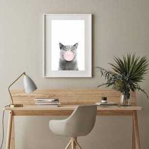 Quadro gatinho bubble gum - 60x48cm Moldura: madeira branca Informações do produto tire todas as suas dúvidas no descritivo abaixo: decoração para quarto, sala, cozinha, escritório, área gourmet e muito mais. Chega de paredes vazias medidas - cada peça tem 60x48cm . Material do papel - papel fotográfico brilhante de altíssima resolução acabamento - todos os quadros são acompanhados de vidro para proteção da imagem. - moldura em madeira maciça na cor preta ou branca conforme produto escolhido e pendurador. - paspatur branco com 7cm de largura - os quadros são embalados de forma segura com plástico bolha com camada dupla de acordo com o tamanho dos quadros. Garantia - garantia de 3 meses. Meu quadro chegou. Como posso fixá-lo Você precisa apenas de um martelo e um prego, pois os quadros já vão acompanhados de penduradores. Esta é a forma mais indicada. Como posso limpar meu quadro A limpeza é feita como um móvel comum da sua casa. Apenas um pano seco ou espanador são suficientes para tal