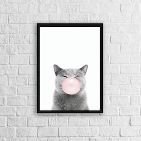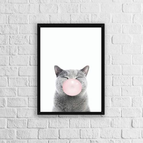 Quadro gatinho chiclete 24x18cm Moldura: madeira preta Informações do produto tire todas as suas dúvidas no descritivo abaixo: decoração para quarto, sala, cozinha, escritório, área gourmet e muito mais. Chega de paredes vazias medidas - cada peça tem 24x18cm a5 . Material do papel - papel fotográfico brilhante de altíssima resolução acabamento - todos os quadros são acompanhados de uma película de acetato para proteção da imagem. - moldura em madeira maciça na cor branca e pendurador móvel que pode ser retirado facilmente caso deseje fixar com fita dupla face. - os quadros são embalados de forma segura com plástico bolha com camada dupla de acordo com o tamanho dos quadros. - de 3 meses prazo de envio pedimos 24 horas úteis no máximo para enviar seu pedido após o envio, segue os prazos normais dos correios, cerca de 7 exceto para norte e nordeste, que pode ser de até 14 . Em diversas cidades, este prazo normalmente é reduzido, mas depende do prazo dos correios. Meu quadro chegou. Como posso fixá-lo Você precisa apenas de um martelo e um prego, pois os quadros já vão acompanhados de penduradores. Esta é a forma mais indicada. Caso prefira, você pode utilizar uma fita dupla face neste caso, sugerimos de alta qualidade para evitar que descole e seu quadro caia . Como posso limpar meu quadro A limpeza é feita como um móvel comum da sua casa. Apenas um pano seco ou espanador são suficientes para tal