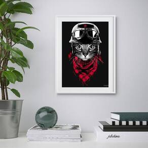 Quadro gatinho motociclista - 60x48cm Moldura: madeira preta Informações do produto tire todas as suas dúvidas no descritivo abaixo: decoração para quarto, sala, cozinha, escritório, área gourmet e muito mais. Chega de paredes vazias medidas - cada peça tem 60x48cm . Material do papel - papel fotográfico brilhante de altíssima resolução acabamento - todos os quadros são acompanhados de vidro para proteção da imagem. - moldura em madeira maciça na cor preta ou branca conforme produto escolhido e pendurador. - paspatur branco com 7cm de largura - os quadros são embalados de forma segura com plástico bolha com camada dupla de acordo com o tamanho dos quadros. - de 3 meses. Meu quadro chegou. Como posso fixá-lo Você precisa apenas de um martelo e um prego, pois os quadros já vão acompanhados de penduradores. Esta é a forma mais indicada. Como posso limpar meu quadro A limpeza é feita como um móvel comum da sua casa. Apenas um pano seco ou espanador são suficientes para tal Marca: Não Informado
