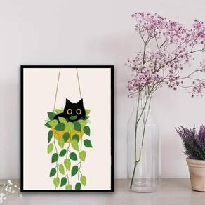 Quadro Gatinho No Vaso De Planta 45X34Cm