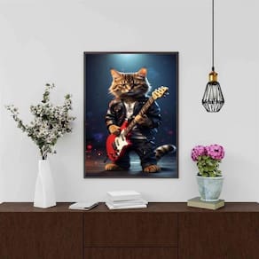 Quadro gatinho roqueiro - guitarra 24x18cm - com vidro Cor: moldura branca Informações do produto tire todas as suas dúvidas no descritivo abaixo: decoração para quarto, sala, cozinha, escritório, área gourmet e muito mais. Chega de paredes vazias medidas - cada peça tem 24x18cm a5 . Material do papel - papel fotográfico brilhante de altíssima resolução acabamento - todos os quadros são acompanhados de vidro para proteção da imagem. - moldura em madeira maciça na cor preta ou branca conforme produto escolhido e pendurador . - os quadros são embalados de forma segura com plástico bolha com camada dupla de acordo com o tamanho dos quadros. - de 3 meses. Meu quadro chegou. Como posso fixá-lo Você precisa apenas de um martelo e um prego, pois os quadros já vão acompanhados de penduradores. Esta é a forma mais indicada. Como posso limpar meu quadro A limpeza é feita como um móvel comum da sua casa. Apenas um pano seco ou espanador são suficientes para tal Marca: Não Informado Ean: 7891234551504