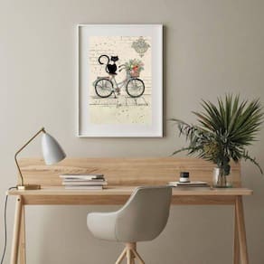 Quadro gato bicicleta flores - 60x48cm