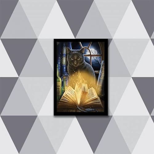 Quadro Gato Bruxo Com Livro 24X18Cm Moldura: madeira branca