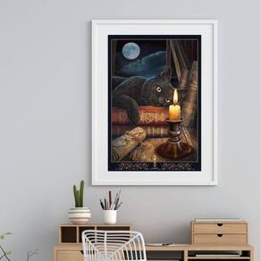 Quadro gato bruxo com vela - 60x48cm Moldura: madeira branca Informações do produto tire todas as suas dúvidas no descritivo abaixo: decoração para quarto, sala, cozinha, escritório, área gourmet e muito mais. Chega de paredes vazias medidas - cada peça tem 60x48cm . Material do papel - papel fotográfico brilhante de altíssima resolução acabamento - todos os quadros são acompanhados de vidro para proteção da imagem. - moldura em madeira maciça na cor preta ou branca conforme produto escolhido e pendurador. - paspatur branco com 7cm de largura - os quadros são embalados de forma segura com plástico bolha com camada dupla de acordo com o tamanho dos quadros. Garantia - garantia de 3 meses. Meu quadro chegou. Como posso fixá-lo Você precisa apenas de um martelo e um prego, pois os quadros já vão acompanhados de penduradores. Esta é a forma mais indicada. Como posso limpar meu quadro A limpeza é feita como um móvel comum da sua casa. Apenas um pano seco ou espanador são suficientes para tal Ean: 7897357978662
