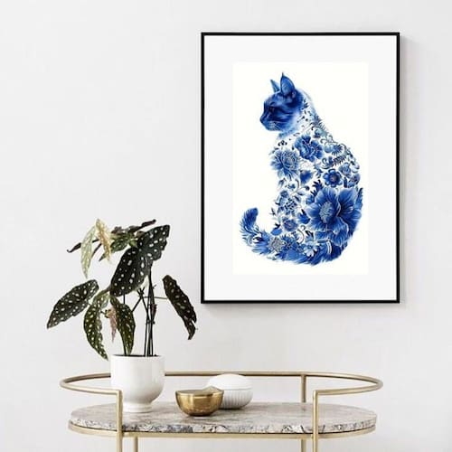 Quadro gato floral azul - 60x48cm