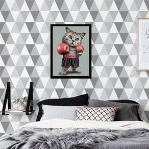 Quadro gato lutador de boxe 33x24cm - com vidro Moldura: madeira preta Informações do produto tire todas as suas dúvidas no descritivo abaixo: decoração para quarto, sala, cozinha, escritório, área gourmet e muito mais. Chega de paredes vazias medidas - cada peça tem 33x24cm a4 . Material do papel - papel fotográfico brilhante de altíssima resolução acabamento - todos os quadros são acompanhados de vidro para proteção da imagem. - moldura em madeira maciça na cor preta e pendurador . - os quadros são embalados de forma segura com plástico bolha com camada dupla de acordo com o tamanho dos quadros. - de 3 meses. Meu quadro chegou. Como posso fixá-lo Você precisa apenas de um martelo e um prego, pois os quadros já vão acompanhados de penduradores. Esta é a forma mais indicada. Como posso limpar meu quadro A limpeza é feita como um móvel comum da sua casa. Apenas um pano seco ou espanador são suficientes para tal Ean: 7895142216609