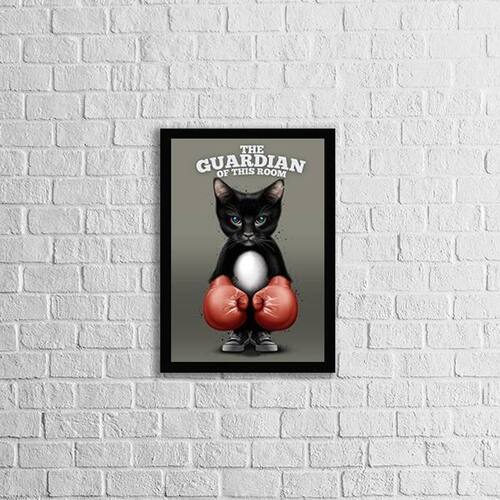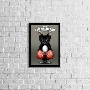 Quadro Gato The Guardian 45x34cm - com vidro - Moldura: Madeira branca