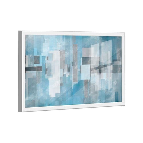Quadro Geométrico Abstrato Azul -- Br Artes Quadro Geométrico Abstrato Azul -- BR ARTES Moldura Branca e Vidro - Gigante 180x105 - - Qualidade Premium (padrão museu)