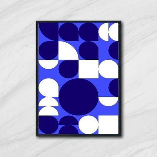 Quadro geométrico azul e branco i 45x34cm - com vidro Moldura: madeira preta Informações do produto tire todas as suas dúvidas no descritivo abaixo: decoração para quarto, sala, cozinha, escritório, área gourmet e muito mais. Chega de paredes vazias medidas - cada peça tem 45x34cm a3 . Material do papel - papel fotográfico brilhante de altíssima resolução acabamento - todos os quadros são acompanhados de vidro para proteção da imagem. - moldura em madeira maciça na cor preta e pendurador . - os quadros são embalados de forma segura com plástico bolha com camada dupla de acordo com o tamanho dos quadros. - de 3 meses. Meu quadro chegou. Como posso fixá-lo Você precisa apenas de um martelo e um prego, pois os quadros já vão acompanhados de penduradores. Esta é a forma mais indicada. Como posso limpar meu quadro A limpeza é feita como um móvel comum da sua casa. Apenas um pano seco ou espanador são suficientes para tal Ean: 7895142168441