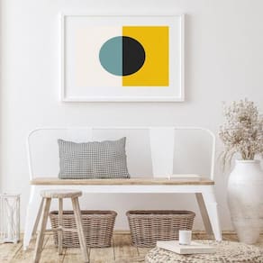 Quadro geométrico bola amarelo e azul - 60x48cm