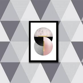 Quadro Geométrico Círculos Preto, Cinza E Rosa 33X24Cm Preta