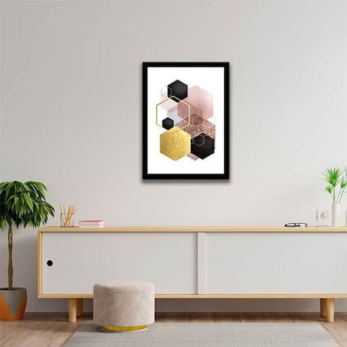 Quadro decorativo geométrico hexágonos preto e dourado 45x34cm Tamanho: a3 45 x 34 Acabamento: película de acetato Moldura: madeira branca Informações do produto Tire todas as suas dúvidas no descritivo abaixo: Decoração para quarto, sala, cozinha, escritório, área gourmet e muito mais. Chega de paredes vazias Medidas - cada peça tem 45x34cm a3 . Material do papel - papel fotográfico brilhante de altíssima resolução Acabamento - todos os quadros são acompanhados de uma película de acetato para proteção da imagem. - moldura em madeira maciça na cor preta ou branca e pendurador móvel que pode ser retirado facilmente caso deseje fixar com fita dupla face. - os quadros são embalados de forma segura com plástico bolha com camada dupla de acordo com o tamanho dos quadros. - de 3 meses Prazo de envio Pedimos 24 horas úteis no máximo para enviar seu pedido após o envio, segue os prazos normais dos correios, cerca de 7 exceto para norte e nordeste, que pode ser de até 14 . Em diversas cidades, este prazo normalmente é reduzido, mas depende do prazo dos correios. Meu quadro chegou. Como posso fixá-lo Você precisa apenas de um martelo e um prego, pois os quadros já vão acompanhados de penduradores. Esta é a forma mais indicada. Caso prefira, você pode utilizar uma fita dupla face neste caso, sugerimos de alta qualidade para evitar que descole e seu quadro caia . Como posso limpar meu quadro A limpeza é feita como um móvel comum da sua casa. Apenas um pano seco ou espanador são suficientes para tal Marca: Não Informado Ean: 7892090471289