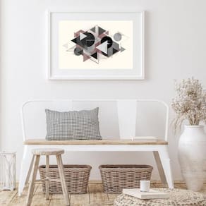 Quadro geométrico suave cinza e magenta - 60x48cm Moldura: madeira branca Informações do produto tire todas as suas dúvidas no descritivo abaixo: decoração para quarto, sala, cozinha, escritório, área gourmet e muito mais. Chega de paredes vazias medidas - cada peça tem 60x48cm . Material do papel - papel fotográfico brilhante de altíssima resolução acabamento - todos os quadros são acompanhados de vidro para proteção da imagem. - moldura em madeira maciça na cor preta ou branca conforme produto escolhido e pendurador. - paspatur branco com 7cm de largura - os quadros são embalados de forma segura com plástico bolha com camada dupla de acordo com o tamanho dos quadros. Garantia - garantia de 3 meses. Meu quadro chegou. Como posso fixá-lo Você precisa apenas de um martelo e um prego, pois os quadros já vão acompanhados de penduradores. Esta é a forma mais indicada. Como posso limpar meu quadro A limpeza é feita como um móvel comum da sua casa. Apenas um pano seco ou espanador são suficientes para tal
