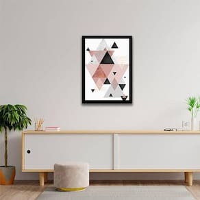 Quadro abstrato geométrico triângulos cinza, preto e rosa ii 33x24cm - com vidro Moldura: madeira preta Informações do produto tire todas as suas dúvidas no descritivo abaixo: decoração para quarto, sala, cozinha, escritório, área gourmet e muito mais. Chega de paredes vazias medidas - cada peça tem 33x24cm a4 . Material do papel - papel fotográfico brilhante de altíssima resolução acabamento - todos os quadros são acompanhados de vidro para proteção da imagem. - moldura em madeira maciça na cor preta e pendurador . - os quadros são embalados de forma segura com plástico bolha com camada dupla de acordo com o tamanho dos quadros. - de 3 meses. Meu quadro chegou. Como posso fixá-lo Você precisa apenas de um martelo e um prego, pois os quadros já vão acompanhados de penduradores. Esta é a forma mais indicada. Como posso limpar meu quadro A limpeza é feita como um móvel comum da sua casa. Apenas um pano seco ou espanador são suficientes para tal Ean: 7895142226103