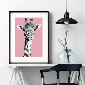 Quadro Girafa Fundo Rosa - 60X48Cm