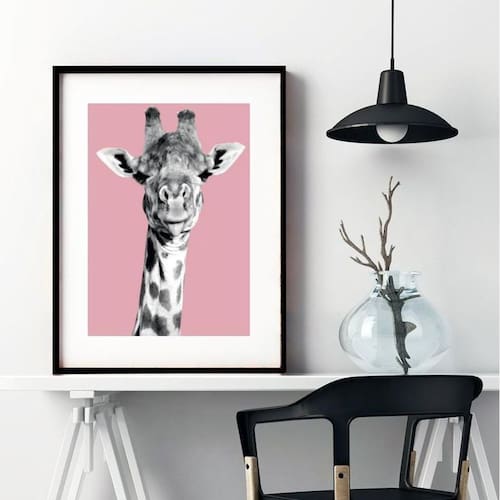 Quadro girafa fundo rosa - 60x48cm
