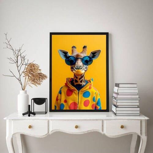 Quadro girafa moderna fashion colorida de óculos 24x18cm Cor: moldura branca Informações do produto tire todas as suas dúvidas no descritivo abaixo: decoração para quarto, sala, cozinha, escritório, área gourmet e muito mais. Chega de paredes vazias medidas - cada peça tem 24x18cm a5 . Material do papel - papel fotográfico brilhante de altíssima resolução acabamento - todos os quadros são acompanhados de uma película de acetato para proteção da imagem. - os quadros são embalados de forma segura com plástico bolha com camada dupla de acordo com o tamanho dos quadros. - de 3 meses. Meu quadro chegou. Como posso fixá-lo Você precisa apenas de um martelo e um prego, pois os quadros já vão acompanhados de penduradores. Esta é a forma mais indicada. Caso prefira, você pode utilizar uma fita dupla face neste caso, sugerimos de alta qualidade para evitar que descole e seu quadro caia . Como posso limpar meu quadro A limpeza é feita como um móvel comum da sua casa. Apenas um pano seco ou espanador são suficientes para tal